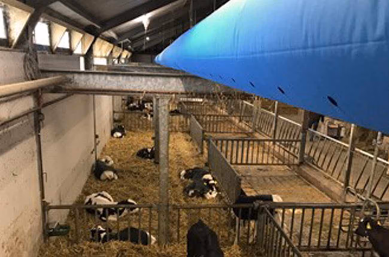 Fresh air and a draught-free environment are of vital importance to calves. A disrupted barn climate resulting from a combination of volatilisation, body heat, exhaled air and humidity can be disastrous. This can lead to severe illnesses and impaired growth and development, which later results in lower yields for the dairy cow. Tube ventilation was explicitly developed to provide fresh air to calves and young cattle in barns. This system draws fresh outside air into the air tube through a fan in the wall. The air is then dispersed through holes in the tube using overpressure. The holes are precisely calculated at Abbi-Aerotech to obtain a comprehensive overview of how the air is distributed and to prevent draughts and downdraughts from forming. The holes and the size of the holes are customised according to the conditions in your barn. Tube ventilation is also an alternative for supplying fresh air and cooling in dairy barns with low ceilings. In low-ceiling barns or areas, fan placement can sometimes prove too complicated, or the air speed may be too great. For example, this system can provide a great solution in milking parlours.