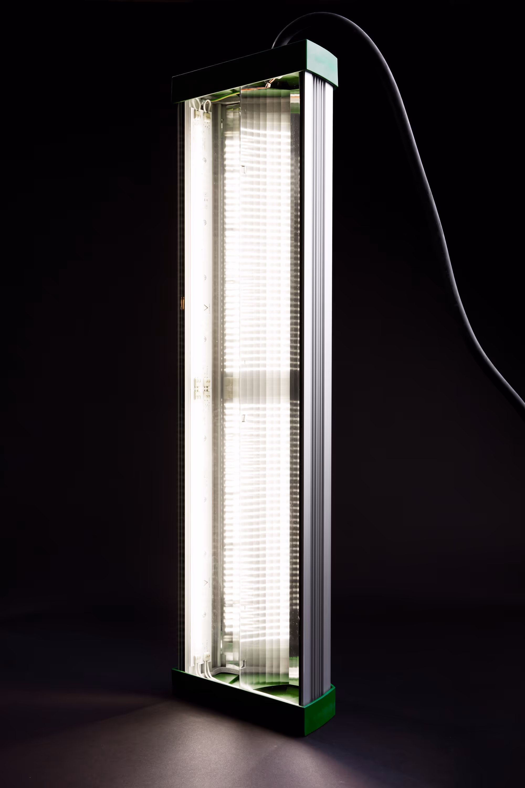 This luminair is fully automatically controlled by DALI control and can be controlled by means of the AGRIBOX pro, Agrilight’s own Light Management System, simulate sunrise and sunset, among other things. The light sensor supplied as standard with the AGRIBOX pro ensures that the light never burns unnecessarily when there is enough daylight in the barn.