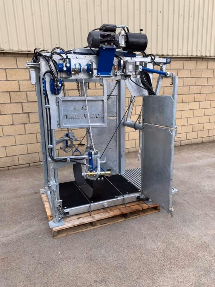 Fully hydraulic, front yoke, belly band, front feet blocks, rear leg and hydraulic rump bar. a true contractor spec crush for the farmer Combined with a 300mm hydraulic crush lift perfectly balanced to raise the crush to a superb working height