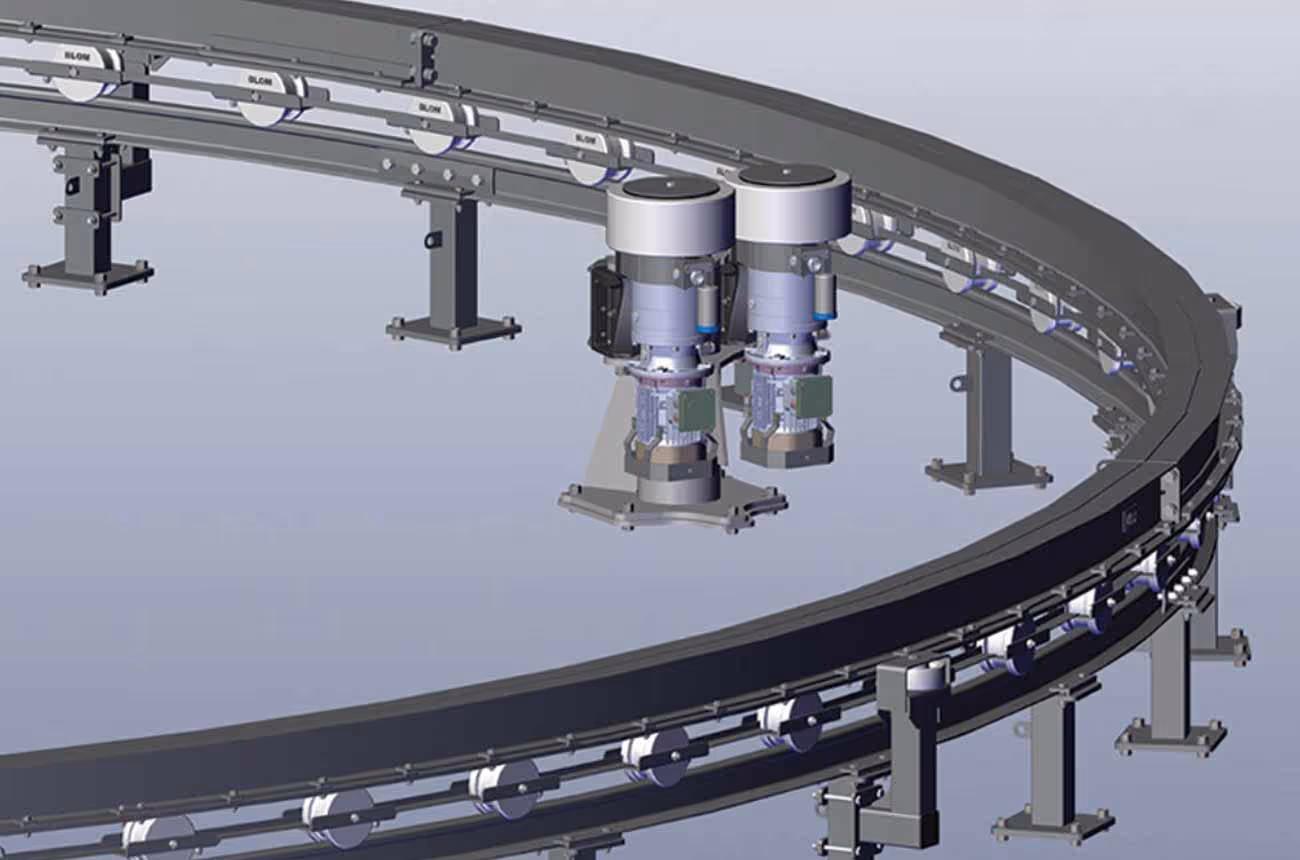 The drives have been relocated to the inside of the I-Beam and closer to the center of the rotary resulting in easier installation and servicing for the drives. The design provides unrestricted access to the underside of the platform. The receiver and milk lines have also moved inward for easier meter maintenance.