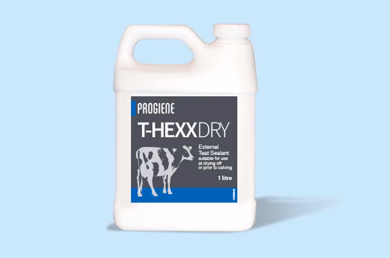 T-HEXXDRY® should be applied at drying off and again 7 days prior to calving if required.